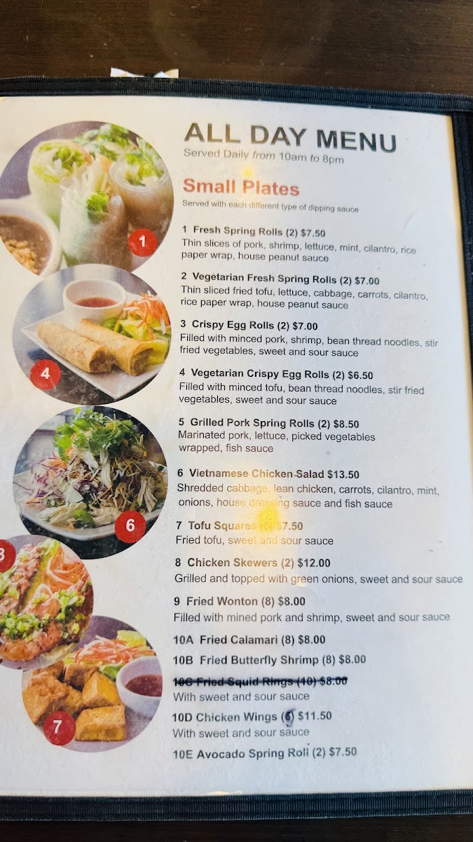 Thin slices of pork, shrimp, lettuce, mint, cilantro, rice paper wrap, house peanut sauce.